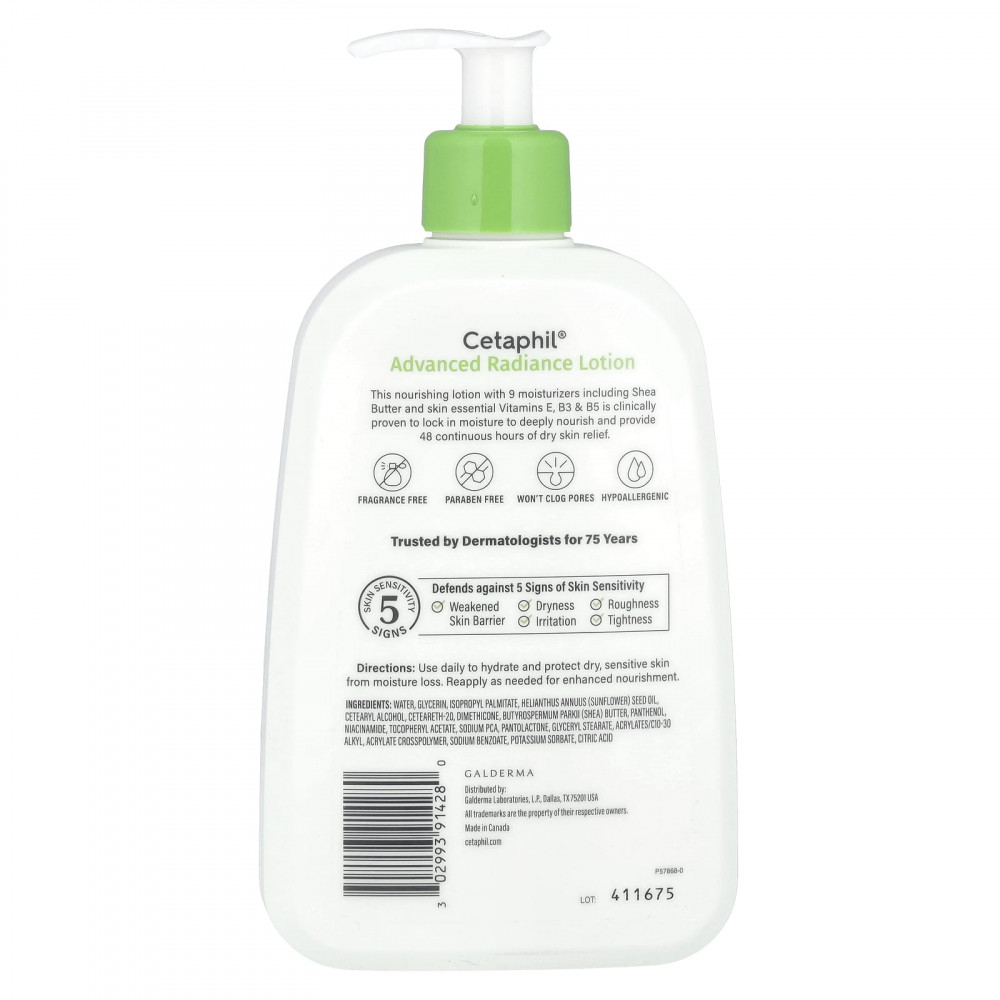 Клинически доказано, что этот питательный лосьон с 9 увлажняющими средствами, включая масло ши и незаменимыми для кожи витаминами E, B3 и B5, удерживает влагу, глубоко питает и обеспечивает сухость кожи в течение 48 часов.