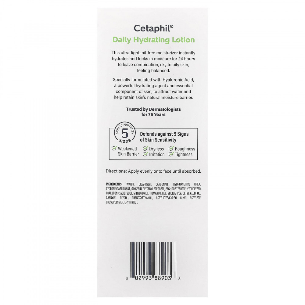 Этот нежирный лосьон для лица, созданный с гиалуроновой кислотой и клинически подтвержденный мягкий подход к чувствительной коже, увлажняет в течение 24 часов и защищает кожу от сухости, не забивая поры.