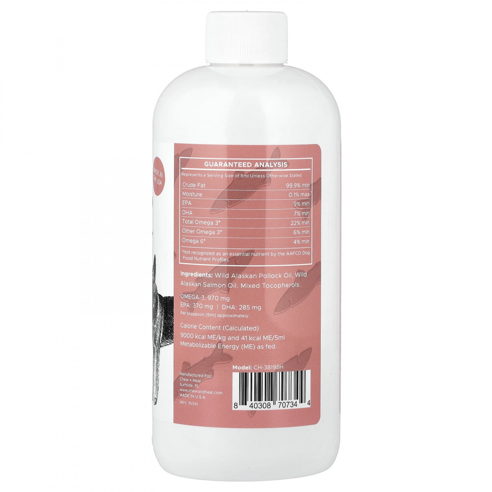 Жидкая добавка с омега-жиром для кожи и шерсти дикого аляскинского лосося от Chew + Heal — это супервкусный способ сохранить здоровый вид и самочувствие вашего пушистого малыша! Он содержит витамины, минералы, жирные кислоты и антиоксиданты для поддержки роскошной шерсти и здоровья кожи. Он также помогает предотвратить пролысины, уменьшает чрезмерное выпадение и увлажняет сухие и ломкие волосы. В отличие от других жиров лосося, которые содержат смеси лосося, выращенного на ферме, в этом жире используется только аляскинский лосось дикого улова.
