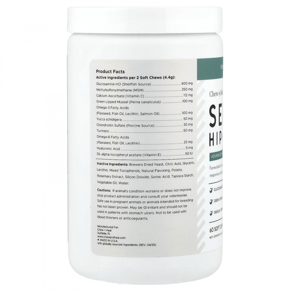 Продукт предназначен только для собак. Улучшенные мягкие жевательные таблетки для бедер и суставов рекомендуется для поддержания здоровой функции бедренной кости и суставов у стареющих собак. Наша уникальная формула способствует оптимальной подвижности и упругости.