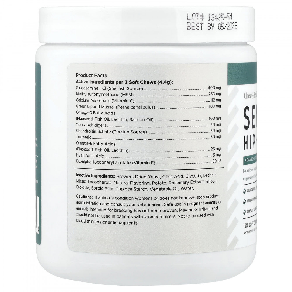Продукт предназначен только для собак. Улучшенные мягкие жевательные таблетки для бедер и суставов рекомендуется для поддержания здоровой функции бедренной кости и суставов у стареющих собак. Наша уникальная формула способствует оптимальной подвижности и упругости.