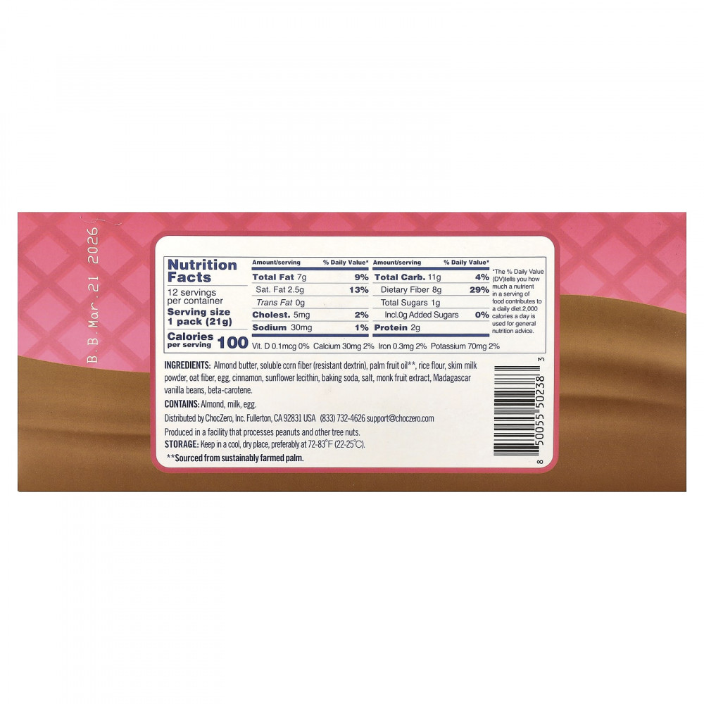Миндальная паста, растворимая кукурузная клетчатка (резистентный декстрин), пальмовое масло**, рисовая мука, порошок из обезжиренного молока, овсяная клетчатка, яиц, корица, подсолнечный лецитин, пищевая сода, соль, экстракт архата, Мадагаскарская ваниль, бета-каротин.