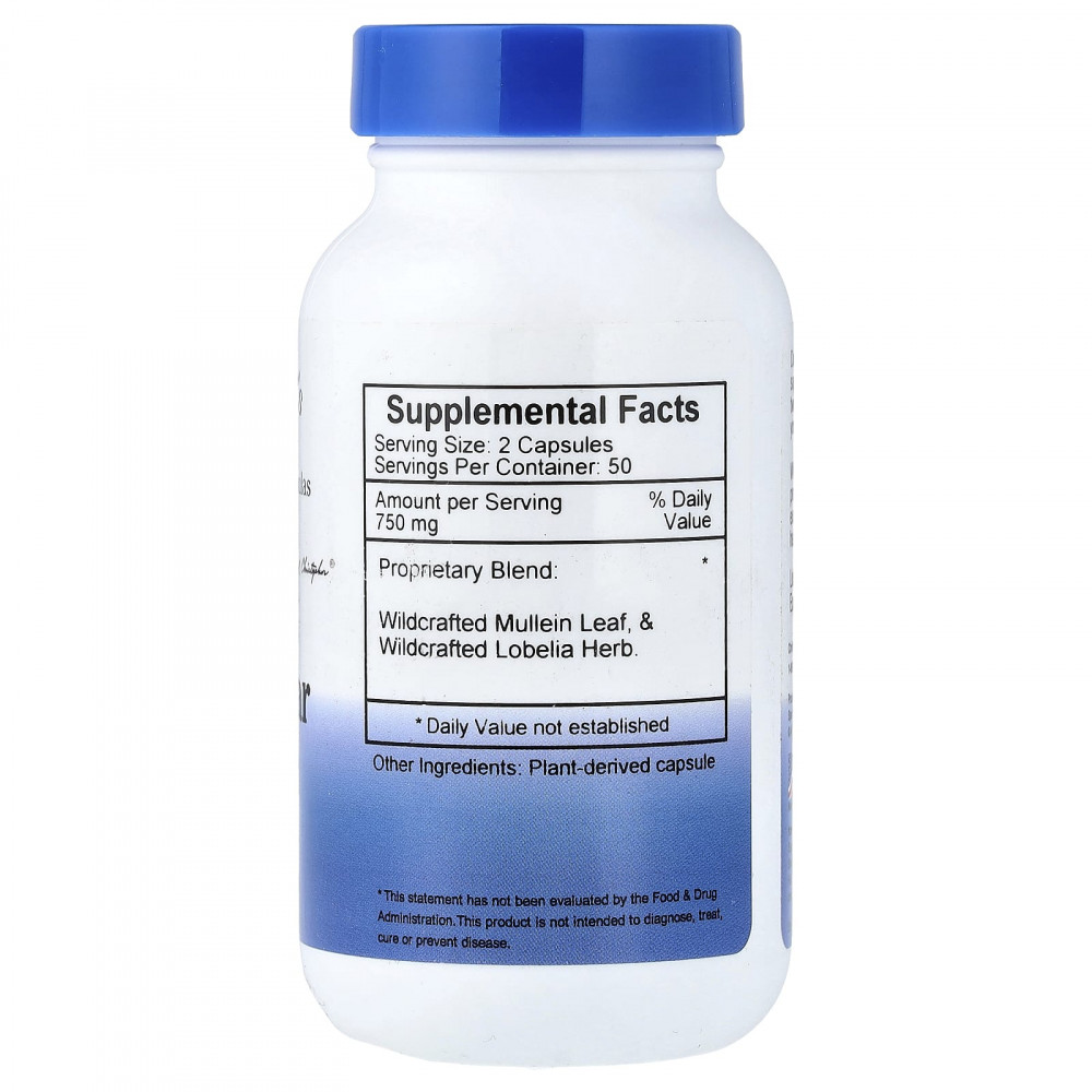 | Запатентованная смесь: Листья дикорастущего коровяка и дикорастущая лобелия | 750 мг | * |