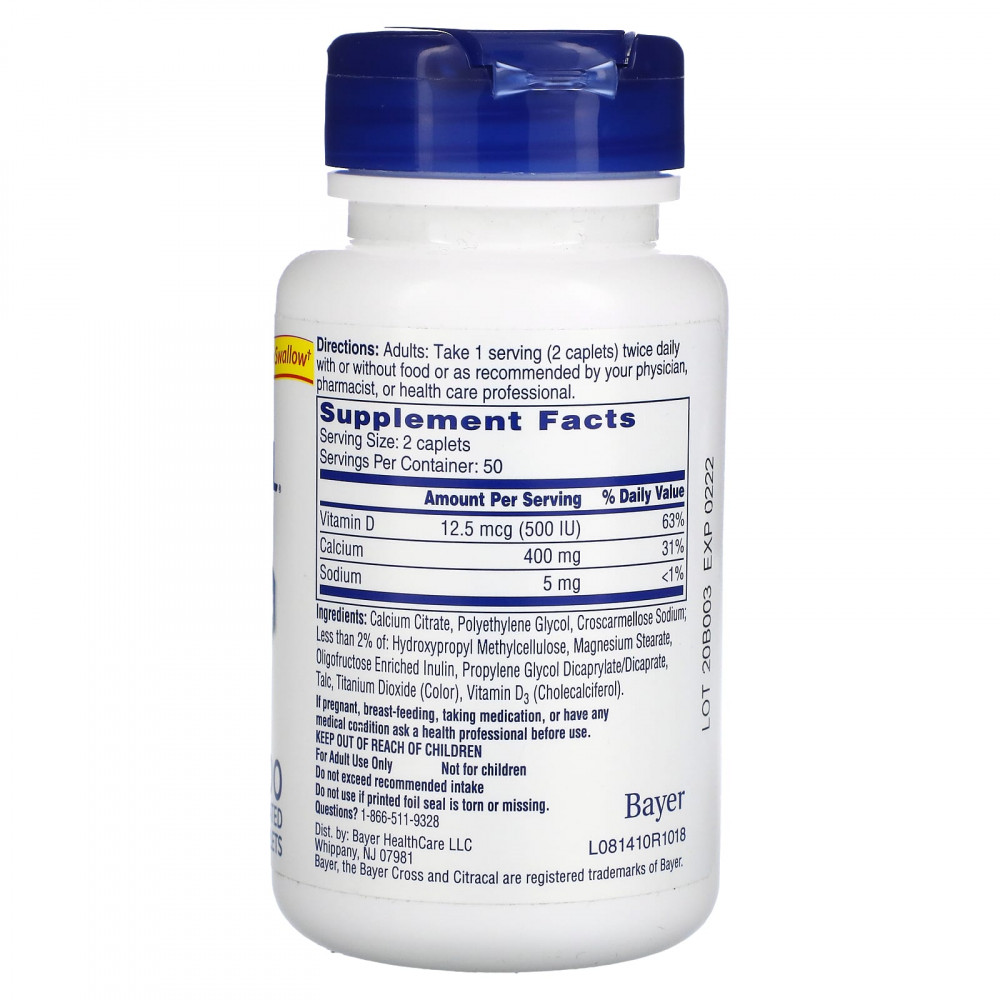 Цитрат кальция, полиэтиленгликоль, кроскармеллоза натрия; менее 2% гидроксипропилметилцеллюлозы, стеарат магния, инулин с высоким содержанием олигофруктозы, пропиленгликоль дикаприлат/дикапрат, тальк, диоксид титана (краситель), витамин D3 (холекальциферол).