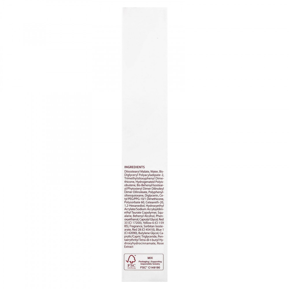 Диизостеарил малат, вода, бис-диглицерил полиациладипат-2, триметилсилоксифенил диметикон, гидрогенизированный полиизобутен, бис-бегенил/изостеарил/фитостерил димер дилинолеил димер дилинолеат, полифенилсилсесквиоксан, диглицерин, цетил ПЭГ/ППГ-10/1 диметикон, полисорбат 60, цетеарет-20,1,2-гександиол, гидроксиэтил акрилат/натрия акрилоилдиметилтаурата сополимер, сквалан, бегениловый спирт, феноксиэтанол, каприлилгликоль, краситель красный 33 (CI 17200), желтый 6 (CI 159 85), отдушка, сорбитан изостеарат, краситель красный 28 (CI 45410), краситель синий 1 (CI 42090), бутиленгликоль, каприловый/каприновый триглицерид, пентаэритритил тетра-ди-трет-бутил гидроксигидроциннамат, экстракт розы.