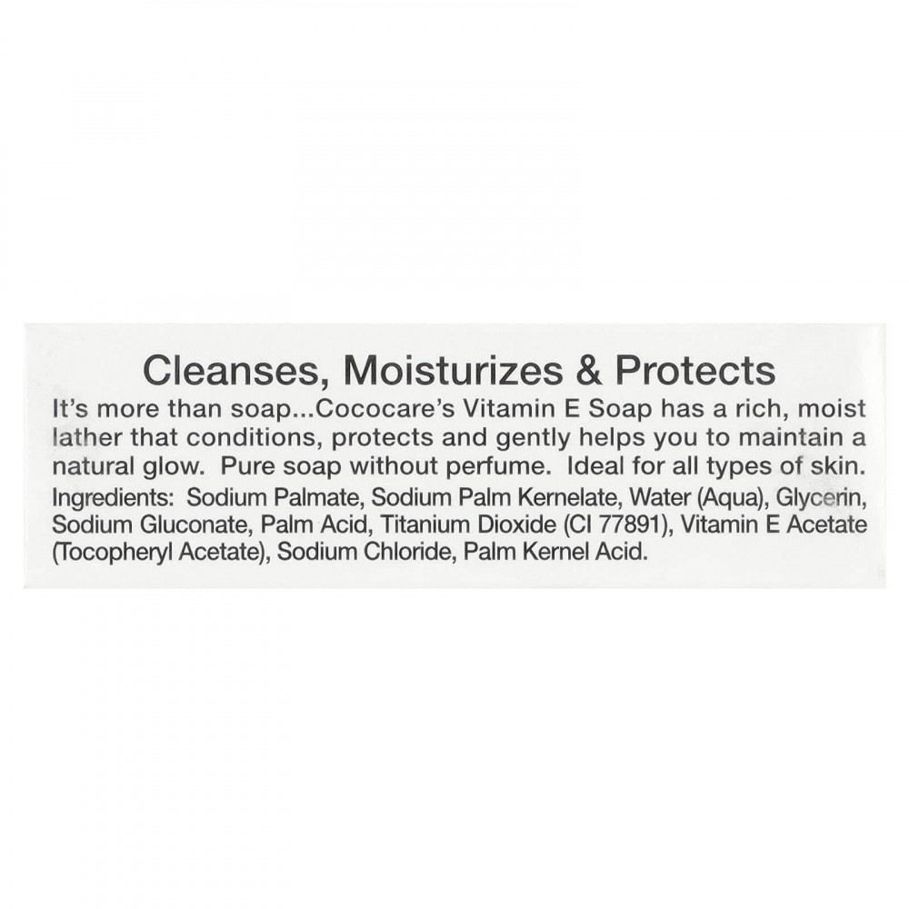 Это больше, чем мыло... Мыло с витамином E Cococare имеет густую увлажняющую пену, которая кондиционирует, защищает и мягко помогает сохранить естественное сияние кожи. Чистое мыло без отдушек. Идеально подходит для всех типов кожи.