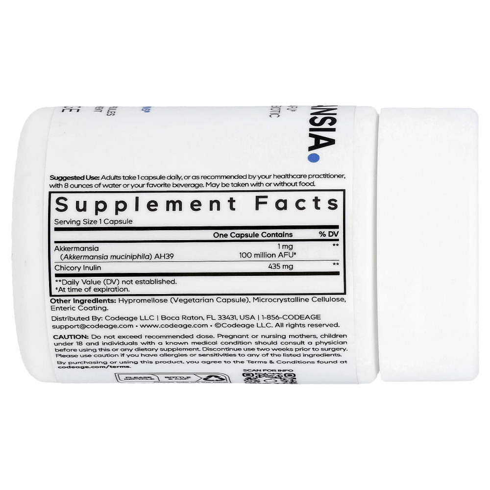 Codeage Akkermansia - это добавка премиального качества, которая сочетает в себе муцинифилу (Akkermansia muciniphila) с инулином цикория, волокном, полученным из корня цикория, для сбалансированного подхода к ежедневному приему добавок. Эта формула содержит 100 миллионов AFU пробиотиков Akkermansia в одной порции.