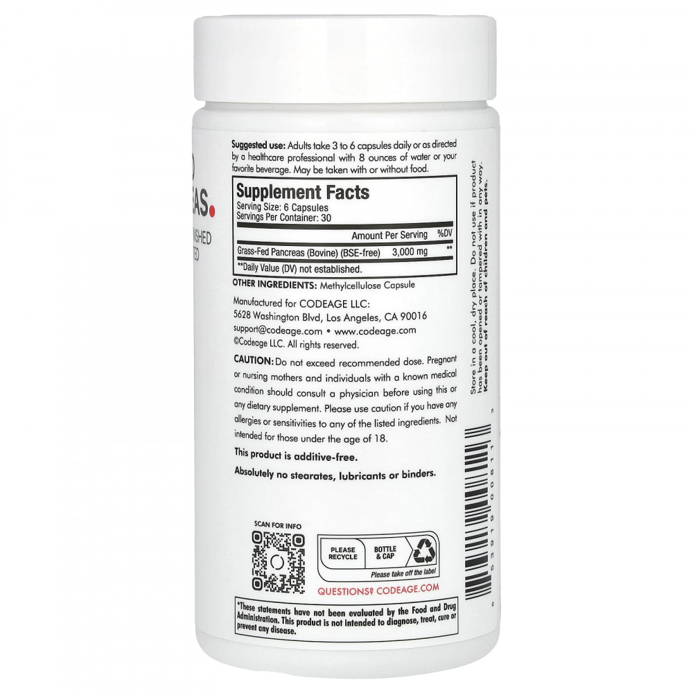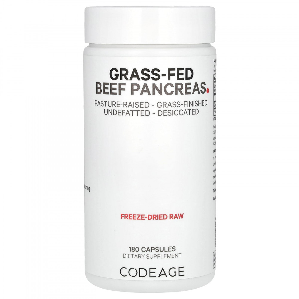 Добавка с говяжьей поджелудочной железой от коров травяного откорма Codeage содержит 3000 мг поджелудочной железы крупного рогатого скота травяного откорма в одной порции. Эта добавка с говяжьей поджелудочной железой, полученная из аргентинской говядины, является сублимированной, высушенной и обезжиренной.