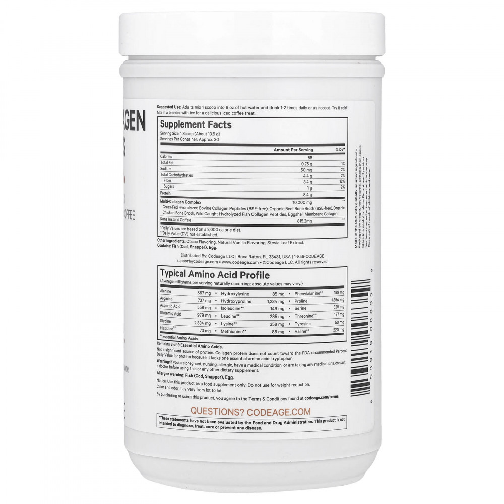 Пептиды коллагена нескольких типов от Codeage со вкусом мокко сочетают в себе насыщенный вкус кофе кона и комбинацию пяти видов коллагена (I, II, III, V и X). Эта быстрорастворимая кофейная смесь сделает особенным ваш утренний ритуал и подарит заряд бодрости в послеобеденное время благодаря восхитительному вкусу мокко.