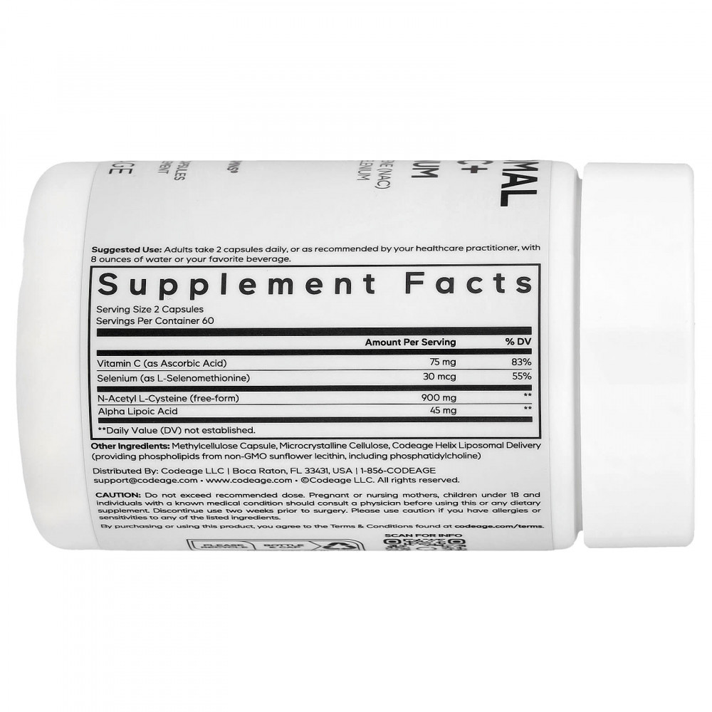 Липосомальный препарат NAC+ Platinum от Codeage содержит 900 мг N-ацетил L-цистеина в свободной форме, предлагая чистый и высококачественный ингредиент.