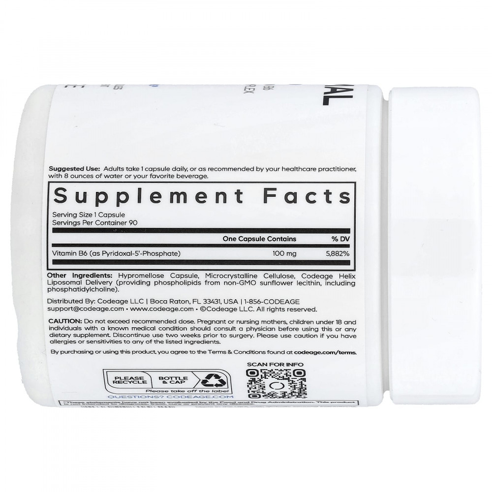 Липосомальная добавка P5P от Codeage содержит витамин B6 в виде пиридоксаль-5'-фосфата в капсулах. Эта добавка с витамином B6 и P5P также имеет липосомальную доставку.