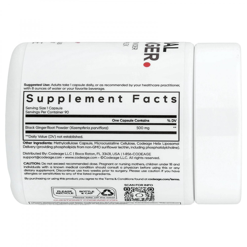 Липосомальный черный имбирь Codeage содержит порошок из корня черного имбиря (Kaempferia parviflora) в капсулах с липосомальной системой доставки на основе подсолнечного лецитина без ГМО. Этот формат разработан, чтобы поддержать включение черного имбиря в процедуры хорошего самочувствия.