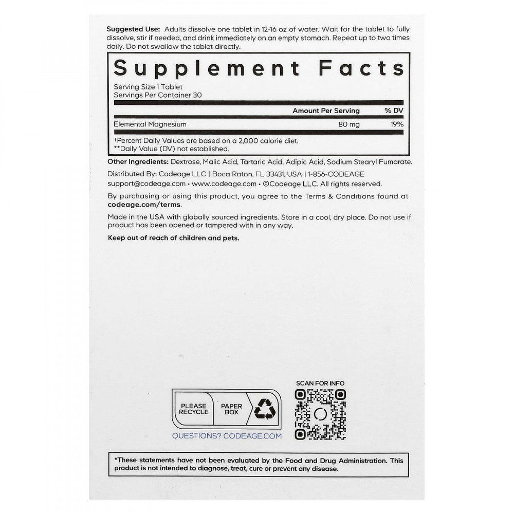 Codeage Molecular Hydrogen содержит быстрорастворимые таблетки с нейтральным водородом, содержащие 12 част. / Млн молекулярного водорода и магния, которые помогают поддерживать водный баланс и хорошее самочувствие.