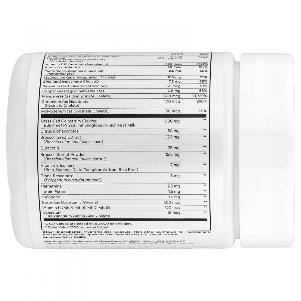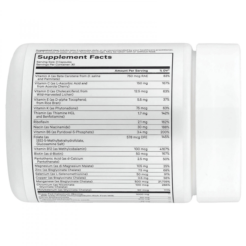 Дополните свой комплекс после тренировки добавкой Multivitamin Recovery Elite Max от Codeage. Этот мультивитаминный комплекс премиального качества, созданный для людей, ведущих активный образ жизни, содержит тщательно подобранную смесь витаминов, минералов, молозива от животных травяного откорма и фитонутриентов в удобном формате капсул.