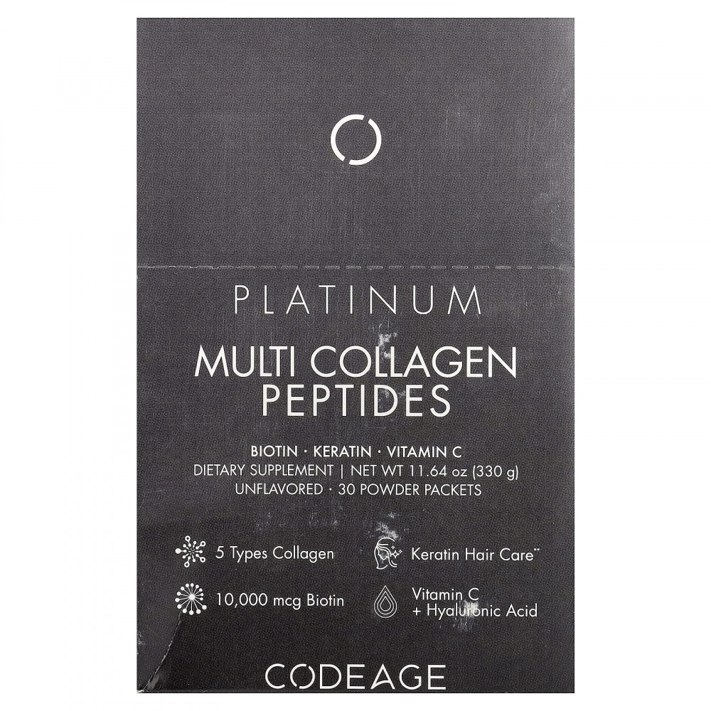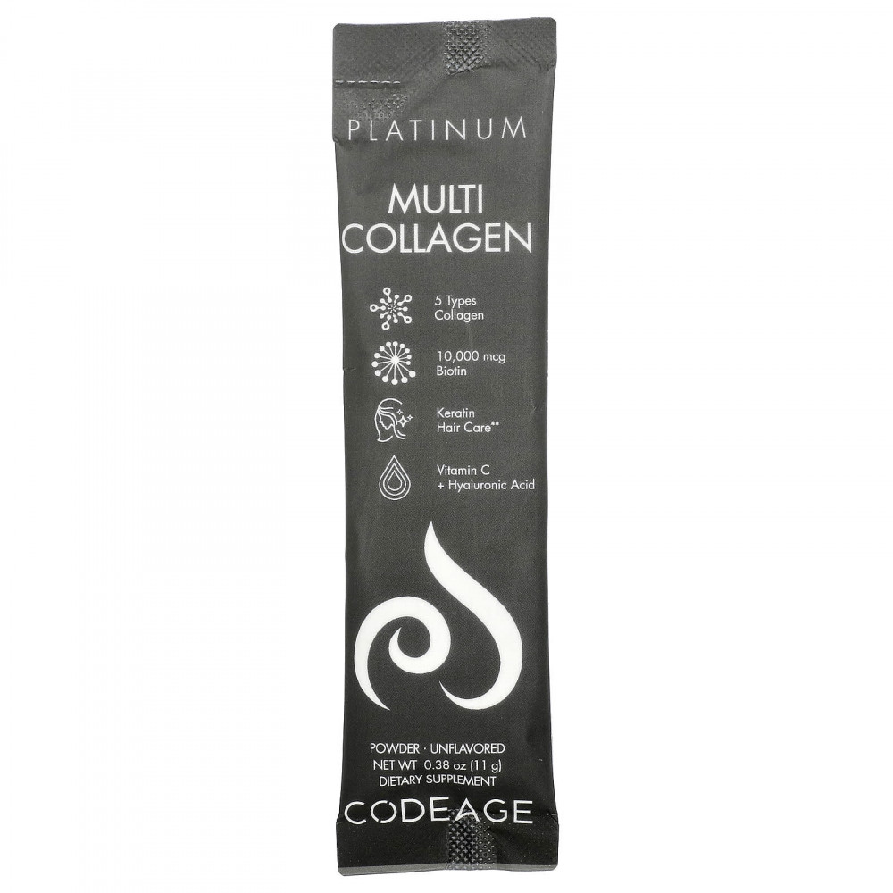 Мультиколлагеновые стики Platinum от Codeage - это средство в форме порошка премиального качества, которое доступно в удобных стиках и содержит 5 типов пептидов коллагена, 18 аминокислот, биотин, кератин и незаменимые витамины B6, C и D3, а также гиалуроновую и пантотеновую кислоты. Каждая упаковка содержит 30 стиков, предлагая комплексное решение "все в одном".