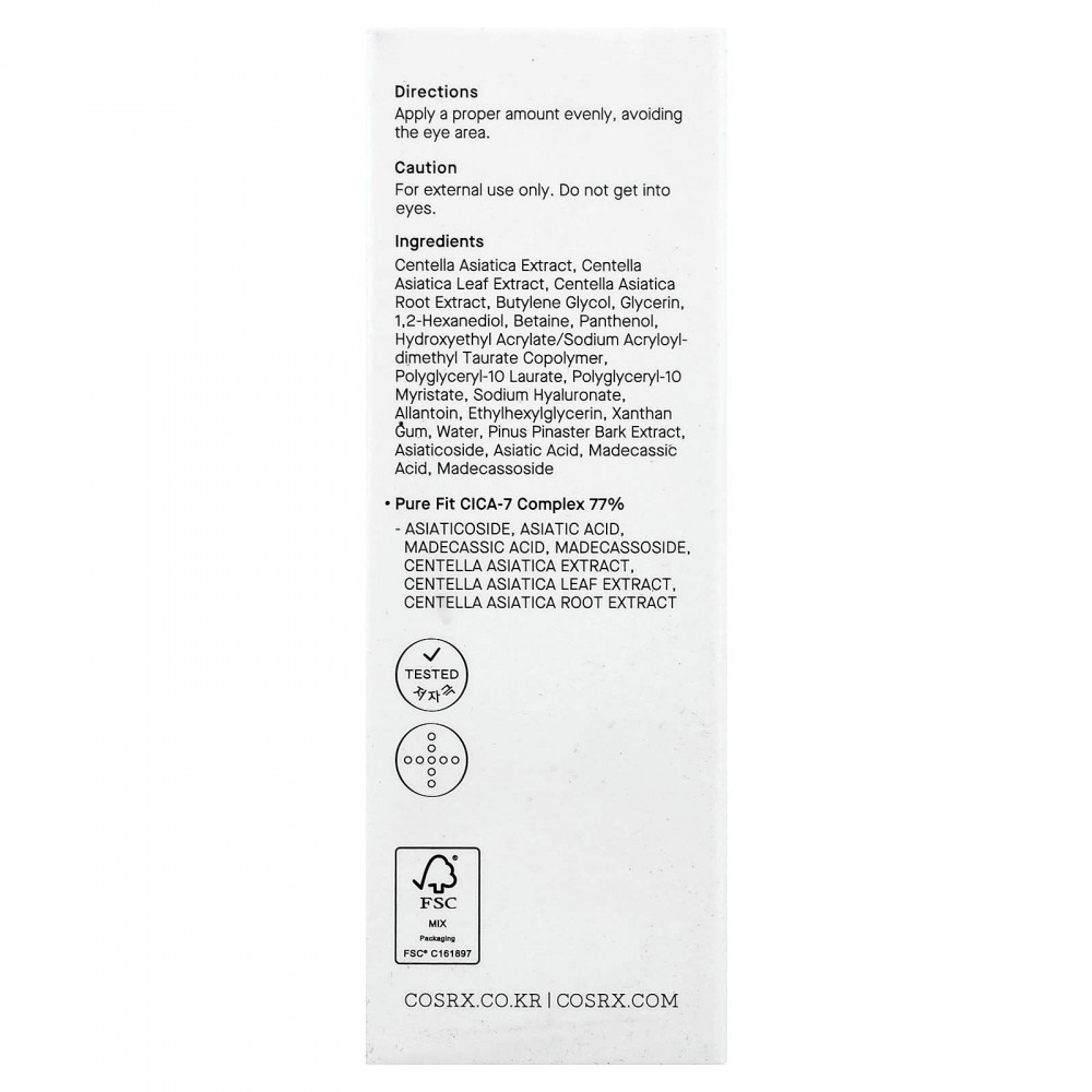 Эта сыворотка с цикой, содержащая 77% комплекса Pure Fit Cica-7, который сочетает в себе успокаивающие, увлажняющие и укрепляющие ингредиенты, успокаивает раздраженную кожу.