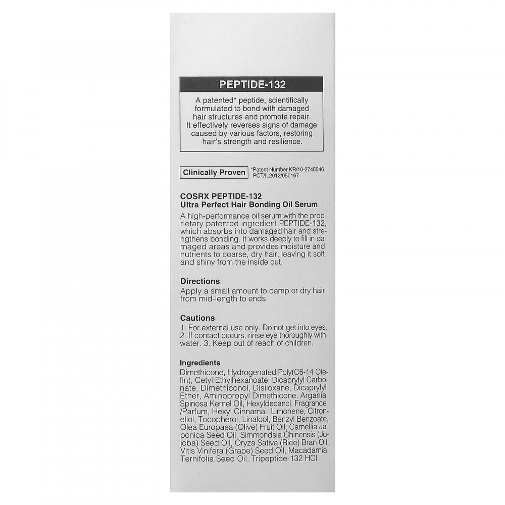 диметикон, гидрогенизированный поли (c6-14 олефин), цетилэтилгексаноат, дикаприлил карбонат, диметиконол, дисилоксан, дикаприлиловый эфир, аминопропил диметикон, аргановое масло (Argania spinosa), гексилдеканол, отдушка /парфюмерная композиция, гексил циннамал, лимонен, цитронеллола, токоферол, линалоол, бензилбензоат, оливковое масло (Olea europaea), масло из семян камелии японской (Camellia japonica), масло из семян жожоба (Simmondsia chinensis), масло из рисовых отрубей (Oryza sativa), масло из виноградных косточек (Vitis vinifera), масло макадамии (Macadamia ternifolia), трипептид-132 гидрохлорид.