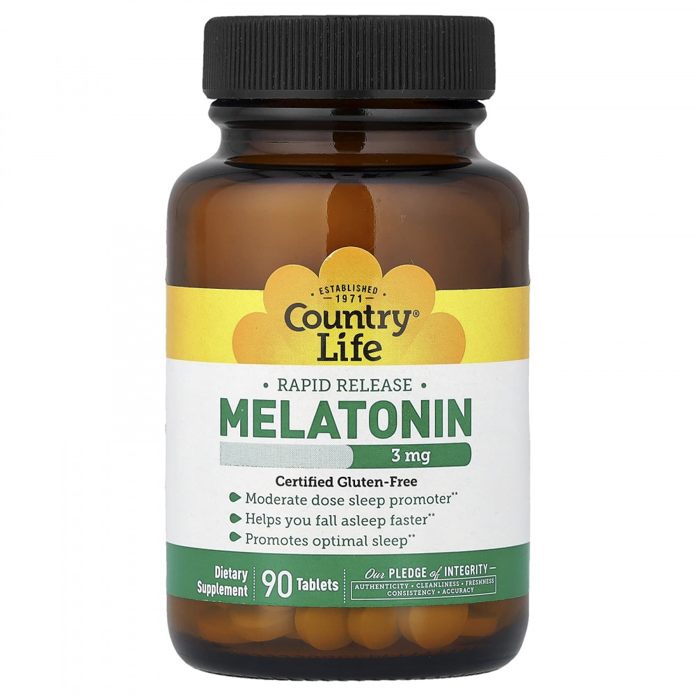 Ищете снотворное? Мелатонин Country Life имитирует гормон, который естественным образом вырабатывается в организме. Система ускоренного высвобождения позволяет таблеткам растворяться в течение нескольких минут.