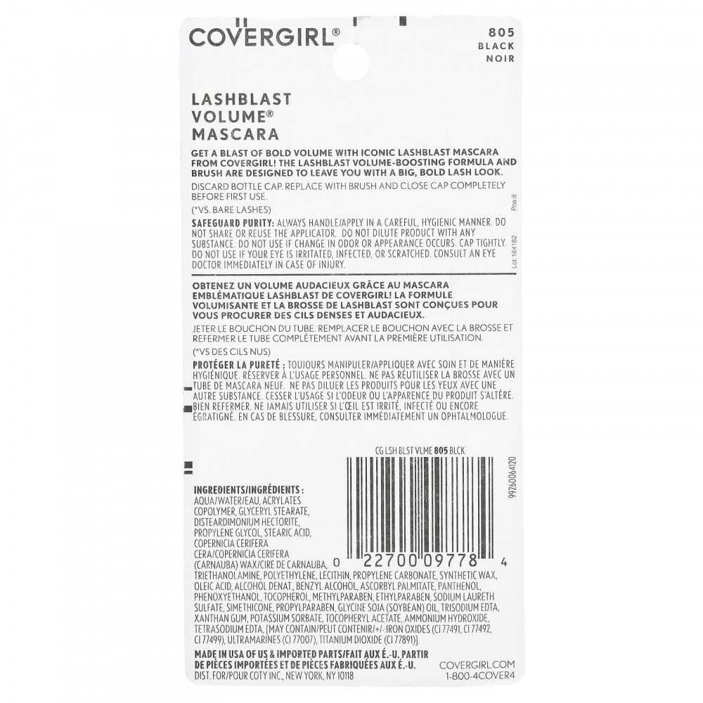 Получите взрывной объем с помощью культовой туши для ресниц от Covergirl! Средство и кисть для увеличения объема ресниц созданы для того, чтобы придать вашим ресницам эффектный вид.