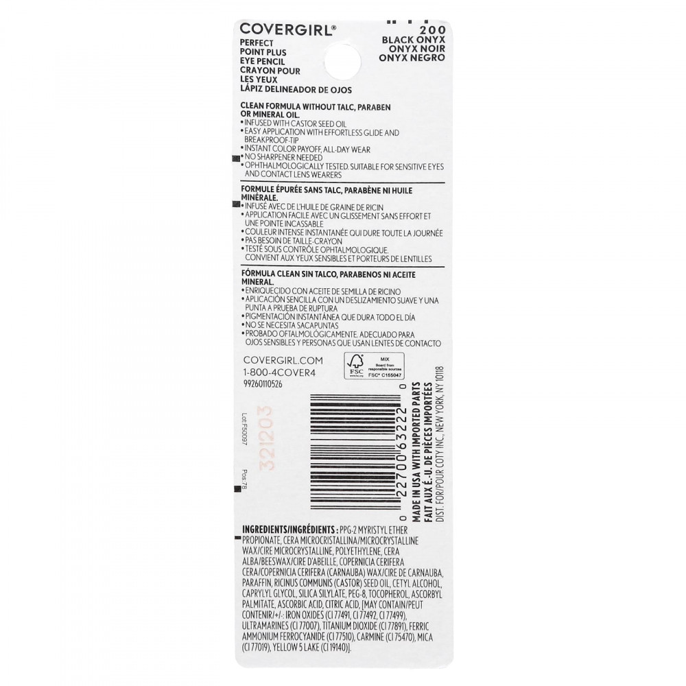 Знаменитая подводка для глаз Perfect Point Plus от Covergirl теперь с чистой и улучшенной формулой. Кремообразная формула, обогащенная касторовым маслом на растительной основе, обеспечивает более гладкое скольжение и легкое нанесение, не раздавливая, не пропуская и не перетаскивая. Прочный кончик рисует точную линию с насыщенным матовым цветом одним мазком. Благодаря встроенному наконечнику для растушевки легко растушевка обеспечивает более мягкий дымчатый финиш. Несмываемый краситель, который сохраняется в течение всего дня.