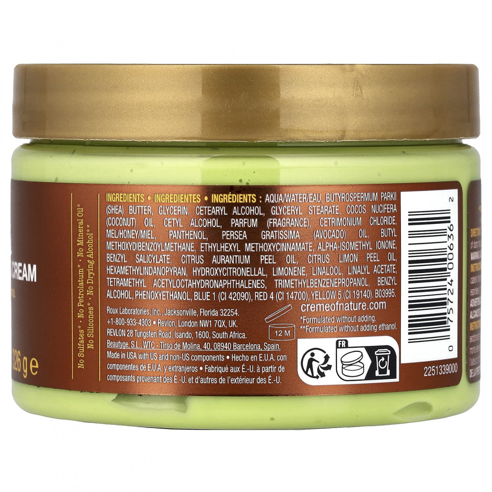 Крем для разглаживания волос и контроля пушения волос Creme of Nature® содержит нашу фирменную смесь чистого меда, натурального кокосового масла и масла ши. Этот разглаживающий и увлажняющий крем для вьющихся волос, обогащенный натуральным маслом авокадо, придает локонам форму и устраняет пушение на срок до 72 часов.