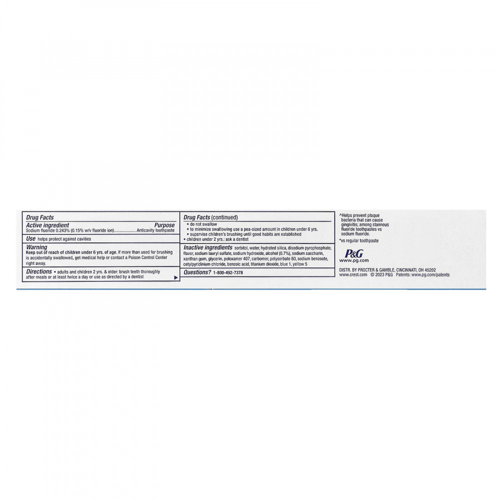 | Сорбитол, вода, гидратированный диоксид кремния, пирофосфат динатрия, ароматизатор, лаурилсульфат натрия, гидроксид натрия, спирт (0,7%), ксантановая камедь, сахарин натрия, глицерин, карбомер, полоксамер 407, полисорбат 80, бензоат натрия, хлорид цетилпиридиния, бензойная кислота, диоксид титана, краситель синий 1, краситель желтый 5. | |