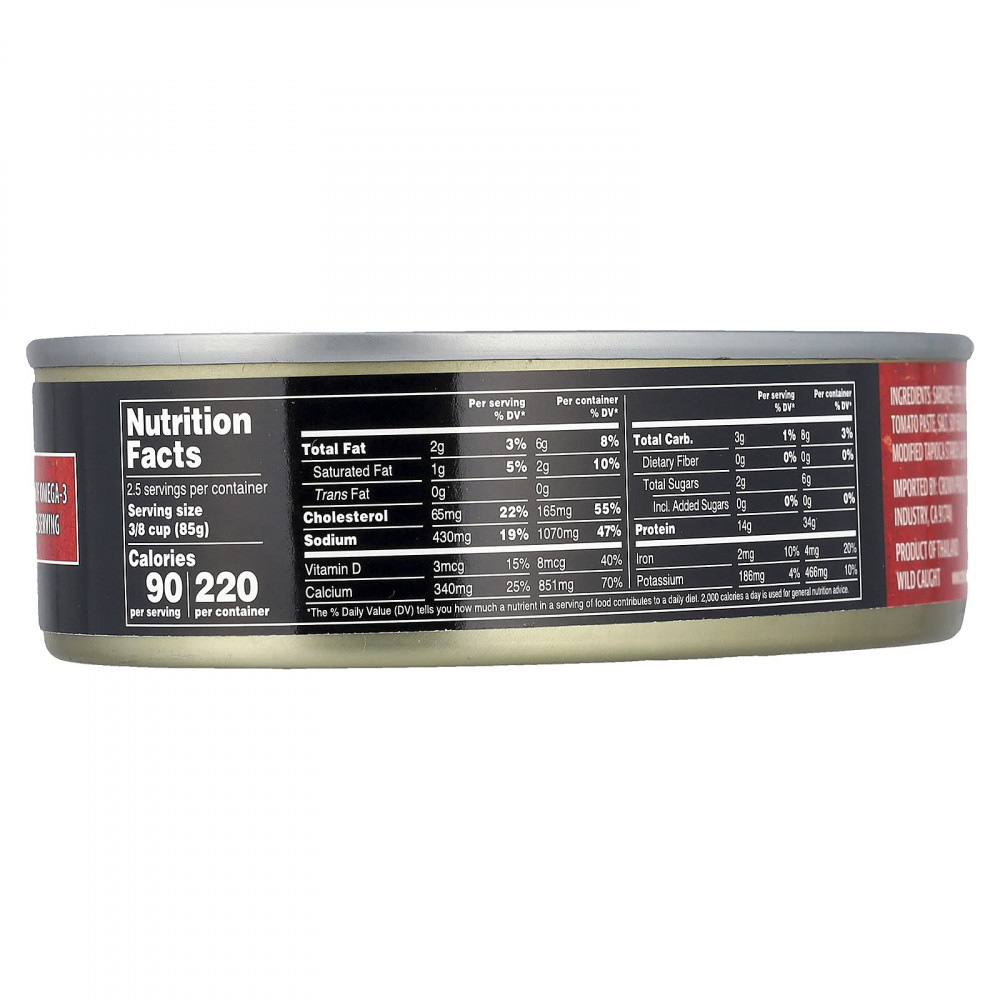 Сардина (рыба), Вода, томатная паста, соль, соевое масло (соя), модифицированный тапиоковый крахмал, гуаровая камедь.