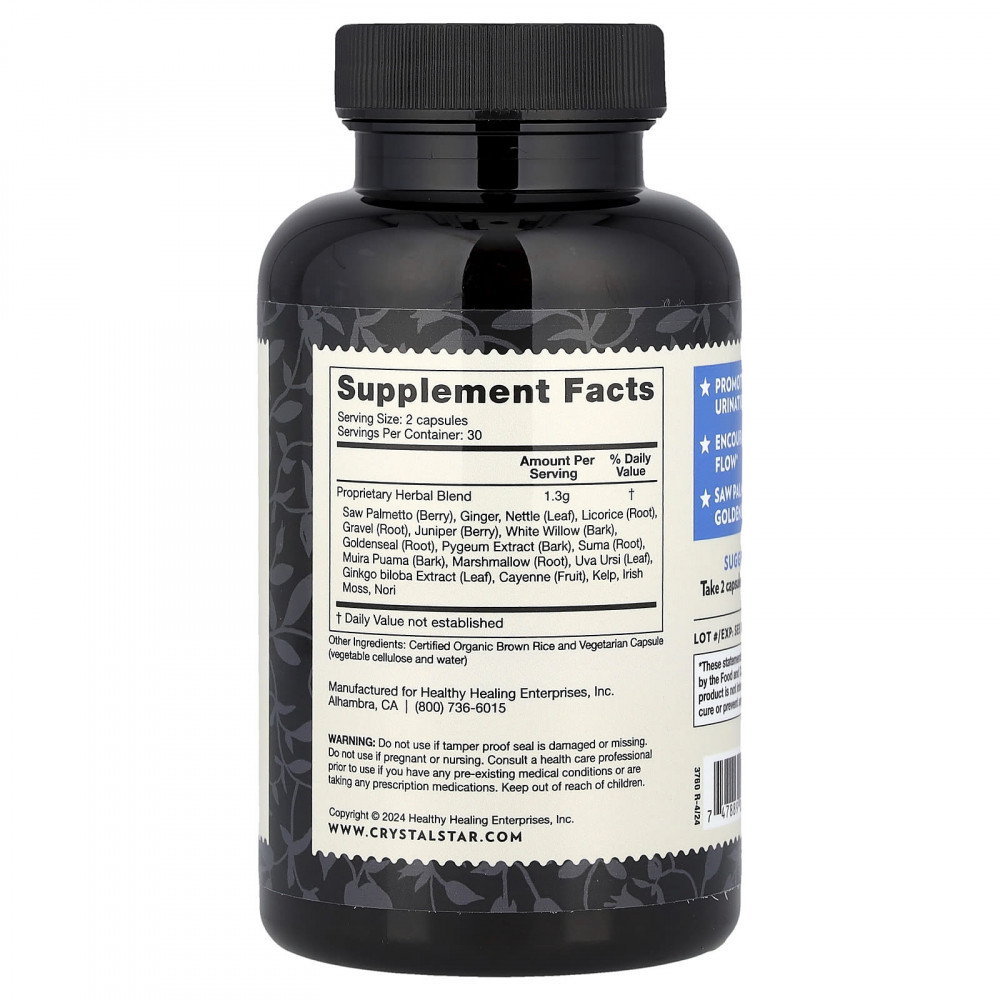 Эта добавка помогает поддерживать здоровье мочевыводящих путей, нормализовать напор и частоту позывов к мочеиспусканию благодаря наличию в составе серенои, имбиря, крапивы и желтокорня.