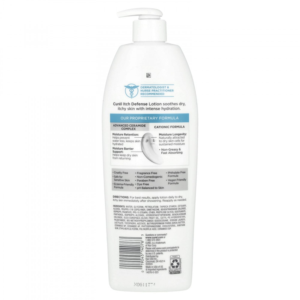 Лосьон Curél Itch Defense успокаивает сухую, зудящую кожу, интенсивно увлажняя ее.