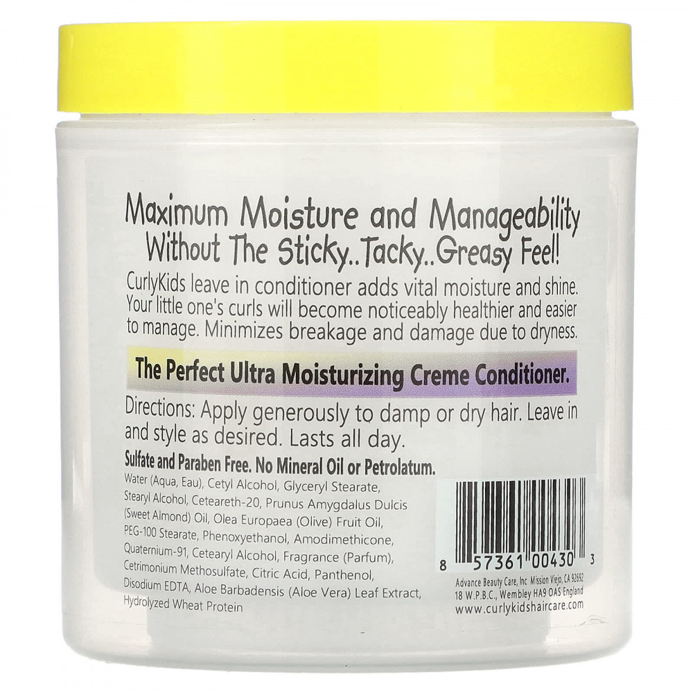 Кондиционер для волос CurlyKids придает волосам жизненную силу и блеск. Кудри вашего малыша станут заметно здоровее, и им будет легче управлять. Минимизирует ломкость и повреждение из-за высыхания.
