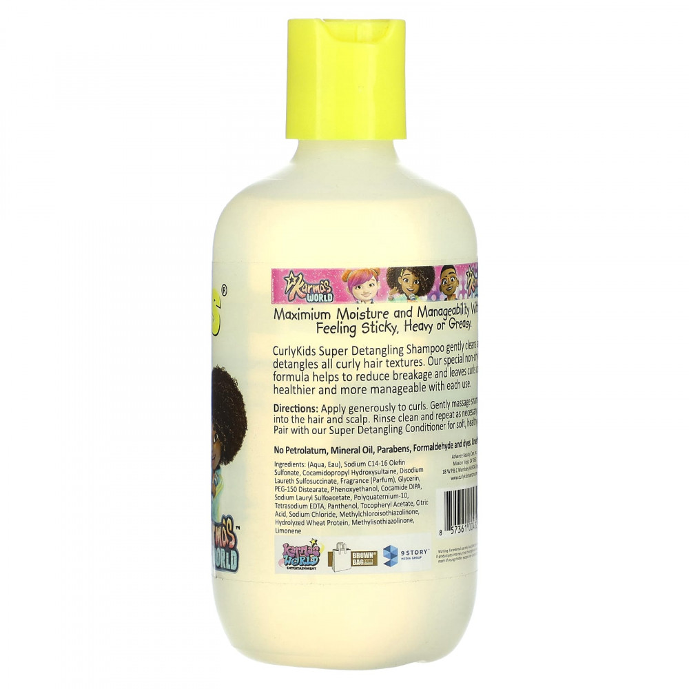 Шампунь для распутывания и расчесывания волос от CurlyKids мягко очищает и распутывает вьющиеся волосы. Наша специальная невысыхающая формула помогает уменьшить ломкость и делает локоны более чистыми, здоровыми и послушными при каждом использовании.