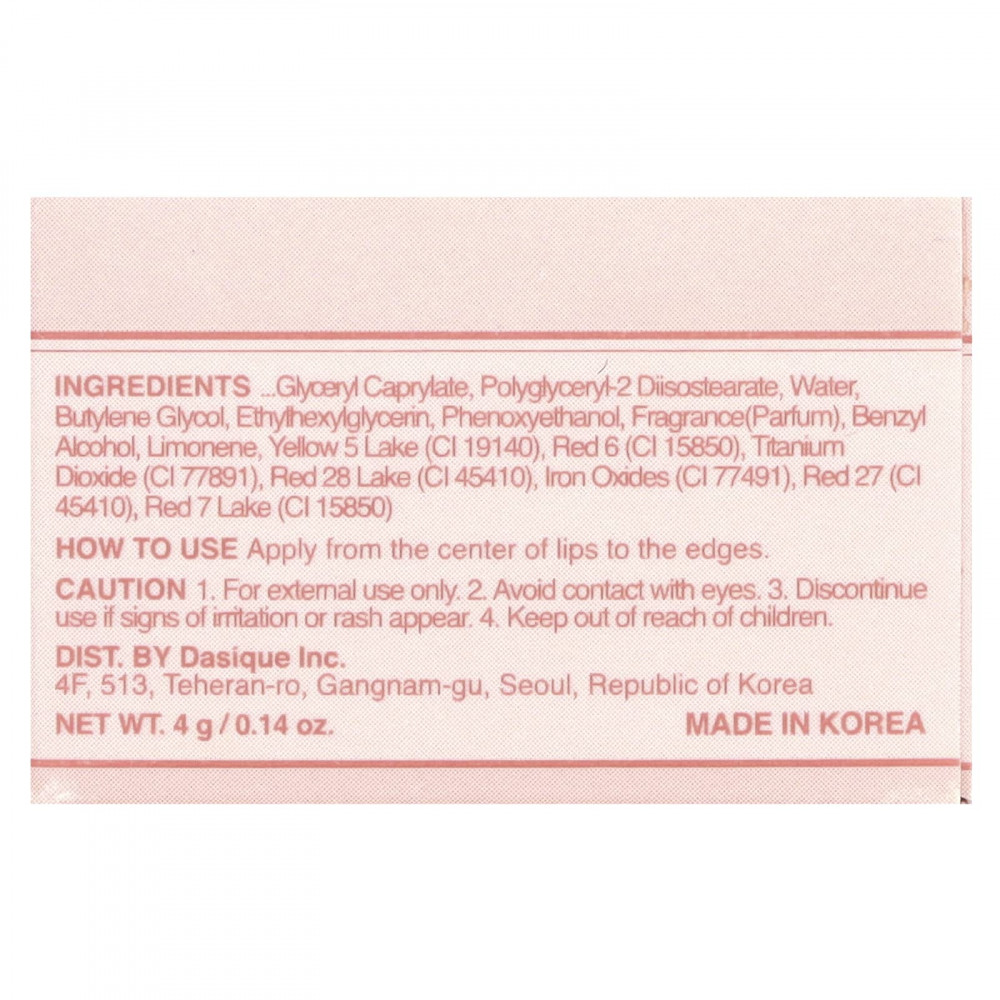 Гидрогенизированный полиизобутен, фитостерил / изостеарил / цетил / стеарил / бегенил димер дилинолеат, бис-бегенил / изостеарил / фитостерил димер дилинолеат, димер дилинолеат, бис-диглицерил полиациладипат-2, масло из семян яблока (Pyrus malus), диизостеарил малат, микрокристаллический воск, касторовое масло (Ricinus communis), гидрогенизированное касторовое масло, масло сладкого миндаля (Prunus amygdalus dulcis), экстракт плодов эвтерпы масличной (Euterpe oleracea), экстракт плодов клубники (Fragaria chiloensis), экстракт плодов лициума китайского (Lycium chinense), экстракт плодов черного дерева, экстракт плодов черной смородины (Ribes nigrum), экстракт плодов ежевики (Rubus fruticosus), экстракт плодов малины (Rubus idaeus), экстракт плодов черники (Vaccinium angustifolium), экстракт плодов клюквы (Vaccinium macrocarpon), экстракт плодов Vaccinium myrtillus, тетрастеарат триацетат сахарозы синтетический фторфлогопит, синтетический воск, фитостерил макадамат, силилат диоксида кремния, сополимер этилена и пропилена, полиглицерил-2 триизостеарат, каприлилгликольглицерил каприлат, полиглицерил-2 диизостеарат, вода, бутиленгликоль, этилгексилглицерин, феноксиэтанол, отдушка (парфюмерная композиция), бензиловый спирт, лимонен, желтое 5 озеро (CI 19140), красный 6 (Cl 15850), диоксид титана (CI 77891), красное дерево 28 лейк (CI 45410), оксиды железа (CI 77491), красный 27 (Cl 45410), красное озеро 7 (CI 15850).