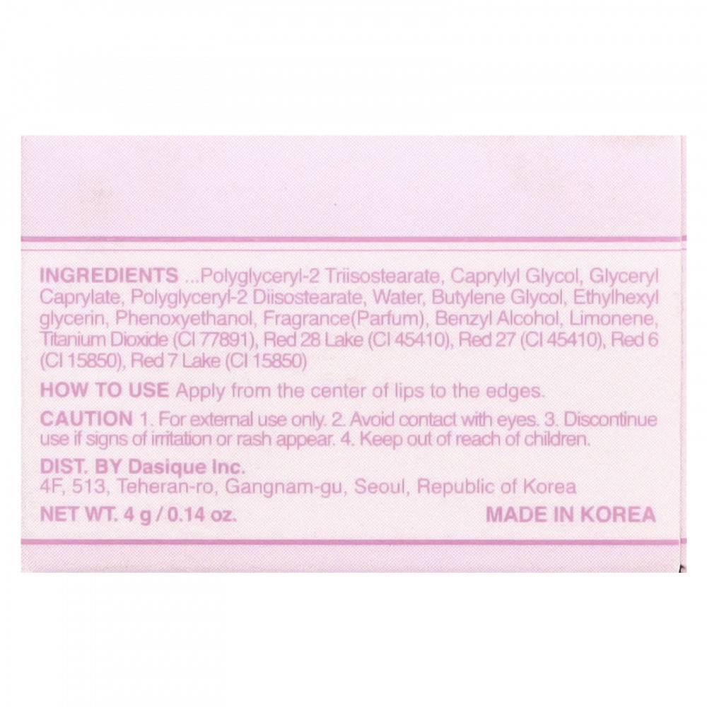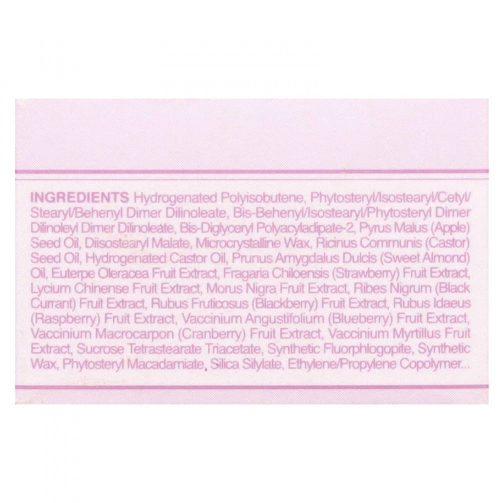 Гидрогенизированный полиизобутен, фитостерил / изостеарил / цетил / стеарил / бегенил димер дилинолеат, бис-бегенил / изостеарил / фитостерил димер дилинолеил димер дилинолеат, бис-диглицерил полиациладипат-2, Pyrus malus (яблочное масло, диизостеарил малат, микрокристаллический воск, касторовое масло (ricinus communis), гидрогенизированное касторовое масло, масло сладкого миндаля (Prunus amygdalus dulcis), экстракт плодов эвтерпы масличной (Euterpe oleracea), экстракт плодов клубники (Fragaria chiloensis), экстракт плодов лициума китайского (Lycium chinense), экстракт плодов черного дерева, экстракт плодов черной смородины (Ribes nigrum), экстракт плодов ежевики (Rubus fruticosus), экстракт плодов малины (Rubus idaeus), экстракт плодов черники (Vaccinium angustifolium), экстракт плодов клюквы (Vaccinium macrocarpon), экстракт плодов Vaccinium myrtillus, тетрастеарат триацетат сахарозы, синтетический фторфлогопит, синтетический воск, фитостерил макадамат, силилат диоксида кремния, сополимер этилена и пропилена, полиглицерил-2 триизостеарат, каприлил гликоль, глицерил каприлат, полиглицерил-2 диизостеарат, вода, бутиленгликоль, этилгексил глицерин, феноксиэтанол, отдушка (парфюмерная композиция), бензиловый спирт, лимонен диоксид титана (CI 77891), красное дерево 28 лейк (CI 45410), красный 27 (CI 45410), красный 6 (CI 15850), красное озеро 7 (CI 15850).
