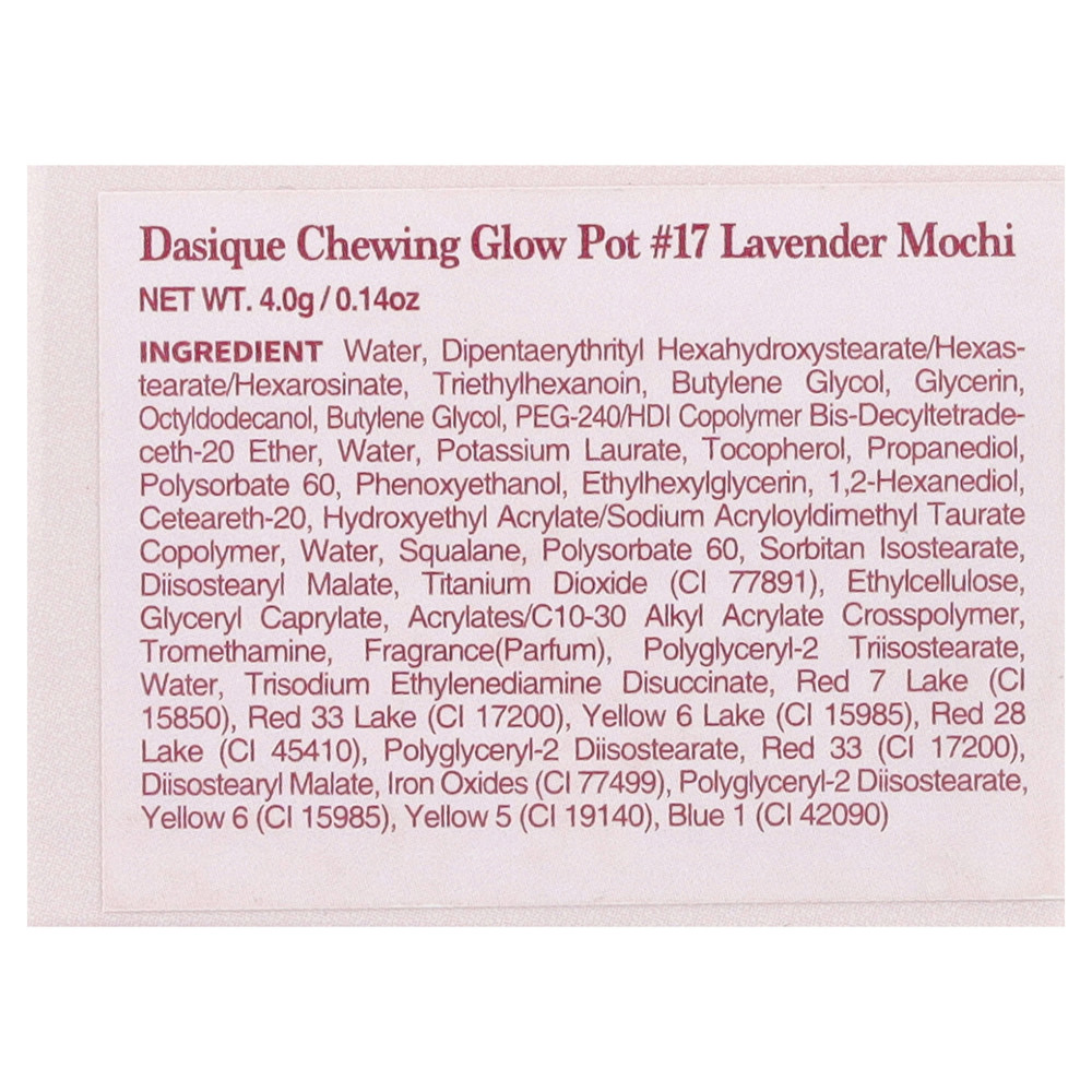 Вода, дипентаэритритил гексагидроксистеорат/гексастерат/гексаросинат, триэтилгексаноин, бутиленгликоль, глицерин, октилдодеканол, бутиленгликоль, ПЭГ-240/HDI сополимер бис-децилтетрадецет-20 эфир, вода, лаурат калия, токоферол, пропандиол, полисорбат 60, феноксиэтанол, этилгексилглицерин, 1,2-гександиол, цетеарет-20, гидроксиэтил акрилат/натрия акрилоилдиметилтаурата сополимер, вода, сквалан, полисорбат 60, сорбитан изостеарат, диизостеарил малат, диоксид титана (CI 77891), этилцеллюлоза, глицерил каприлат, акрилат/c10-30 алкил акрилат кроссполимер, трометамин, отдушка (парфюмерная композиция), полиглицерил-2 триизостеарат, вода, тринатрия этилендиамин дисукцинат, краситель красный 7 лак (CI 15850), краситель красный 33 лак (CI 17200), краситель желтый 6 лак (CI 15985), краситель красный 28 лак (CI 45410), полиглицерил-2 диизостеарат, краситель красный 33 (CI 17200), диизостеарил малат, оксиды железа (CI 77499), полиглицерил-2 диизостеарат, краситель желтый 6 (CI 15985), краситель жёлтый 5 (CI 19140), краситель синий 1 (CI 42090).