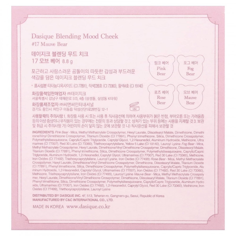 Туманный медведь: слюда, метил метакрилат кроссполимер, гексил лаурат, диметикон/винил диметикон кроссполимер, диметикон, диизостеарил малат, диоксид титана (CI 77891), фенилтриметикон, диоксид кремния, диметикон кроссполимер, полиметилсилсесквиоксан, каприловый/каприновый триглицерид, гидроксид алюминия, 1,2-гександиол, каприлилгликоль, ультрамарины (CI 77007), краситель красный 30 лак (CI 73360), метикон, оксиды железа (CI 77492), триэтоксикаприлилсилан, лаурил лизин, оксиды железа (CI 77499).