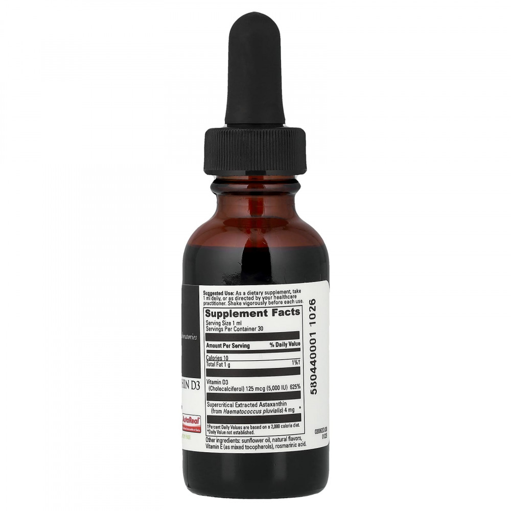 Удобная жидкая формула сочетает в себе витамин D3 и астаксантин для лучшего усвоения организмом кальция и фосфора, защиты от свободных радикалов и укрепления иммунитета.