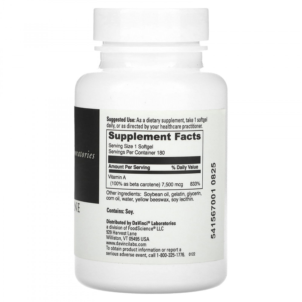 | Витамин A (на 100% в виде бета-каротина) | 7500 мкг | 833% |