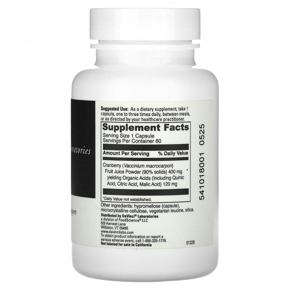 | Клюква (Vaccinium macrocarpon) Порошок фруктового сока (90% сухого вещества), содержащий органические кислоты (включая хинную кислоту). Кислоты, лимонной кислоты, яблочной кислоты) 120 мг | 400 мг | * |