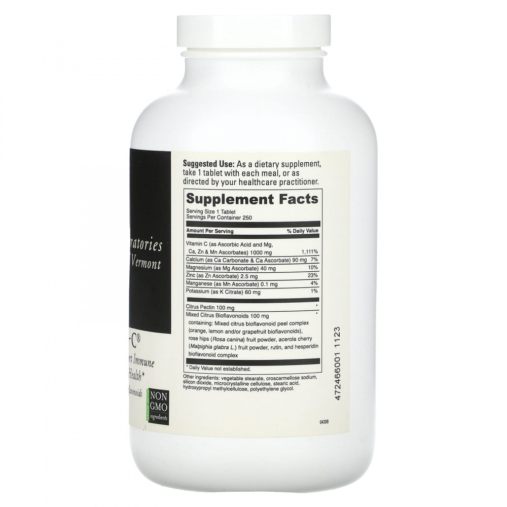 | Витамин C (в виде аскорбиновой кислоты и аскорбатов Mg, Ca, Zn и Mg) | 1000 мг | 1111% |