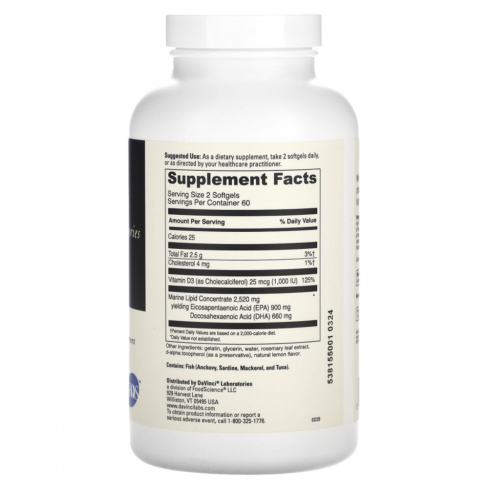 Омега-3 HP-D - это наша высококачественная формула с омега-3 со вкусом лимона, содержащая 900 мг ЭПК и 660 мг ДГК в сочетании с 25 мкг витамина D3. Этот продукт содержит рыбий жир омега-3 из выловленных в дикой природе анчоусов, сардин, скумбрии и тунца. Затем масло подвергается молекулярной дистилляции для обеспечения чистоты и стабильности. Омега 3 HP-D поддерживает баланс холестерина, здоровье сердечно-сосудистой системы, суставов и кожи, а также работу иммунной системы.
