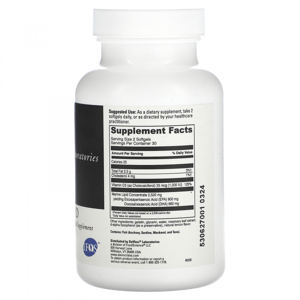 Омега-3 HP-D - это наша высококачественная формула с омега-3 со вкусом лимона, содержащая 900 мг ЭПК и 660 мг ДГК в сочетании с 25 мкг витамина 03. Рыбий жир с омега-3 в этом продукте получен из выловленных в дикой природе анчоусов, сардин, скумбрии и тунца. Затем масло подвергается молекулярной дистилляции для обеспечения чистоты и стабильности. Омега 3 HP-D поддерживает баланс холестерина, здоровье сердечно-сосудистой системы, суставов и кожи, а также работу иммунной системы.