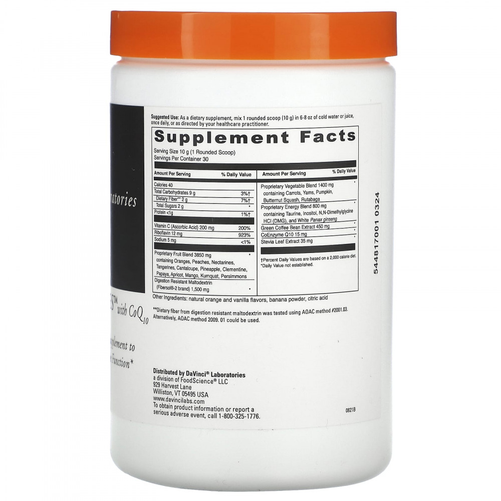 Spectra Oranges ™ - это восхитительное сочетание свежих фруктов и овощей с множеством бодрящих питательных веществ для борьбы с усталостью. Экстракт зеленых кофейных зерен содержит натуральную хлорогеновую кислоту для поддержания уровня энергии. ДМГ, таурин, инозитол и женьшень белый обыкновенный еще больше улучшают эту формулу. Spectra Oranges ™ - это умный и вкусный способ начать утро. Каждая порция содержит всего 13,5 мг кофеина (из экстракта зеленых кофейных зерен).