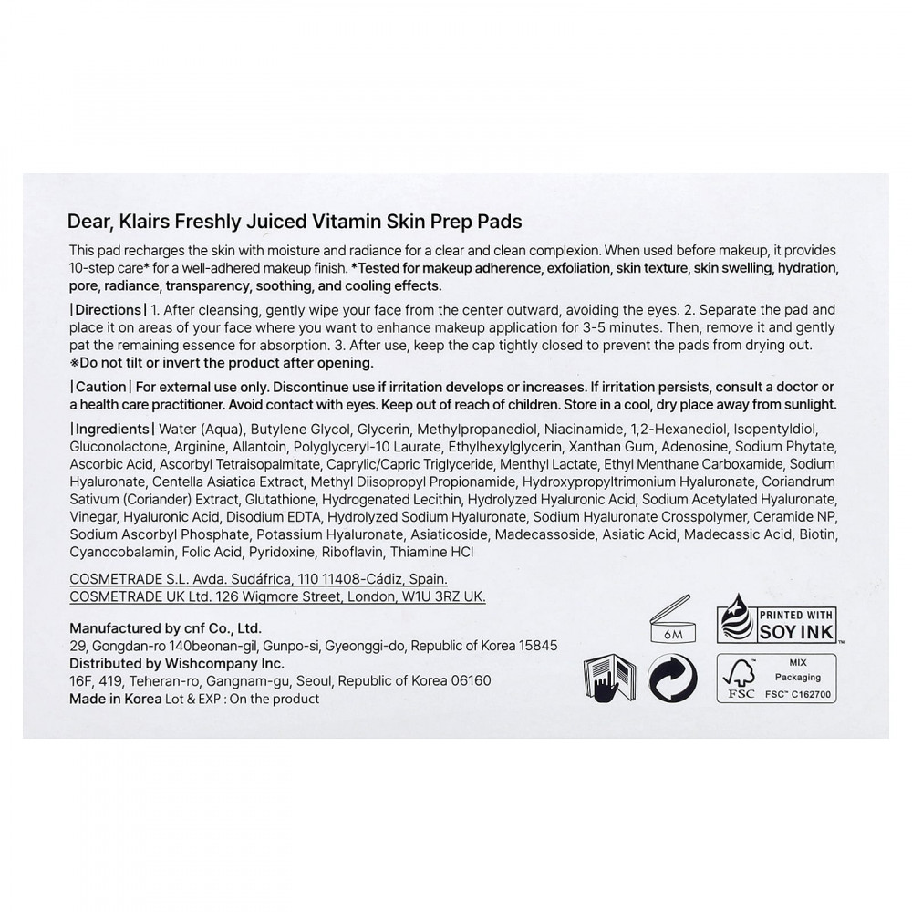 Вода, бутиленгликоль, глицерин, метилпропандиол, никотинамид, 1,2-гександиол, изопентилдиол, глюконолактон, аргинин, аллантоин, полиглицерил-10 лаурат, этилгексилглицерин, ксантановая камедь, аденозин, фитат натрия, аскорбиновая кислота, аскорбил тетраизопальмитат, каприловый/каприновый триглицерид, ментил лактат, этилментанкарбоксамид, гиалуронат натрия, экстракт готу колы (Centella asiatica), метилдиизопропилпропионамид, гиалуронат гидроксипропилтримония, экстракт кориандра (Coriandrum sativum), глутатион, гидрогенизированный лецитин, гидролизованная гиалуроновая кислота, ацетилированный гиалуронат натрия, уксус, гиалуроновая кислота, двунатриевая ЭДТК, гидролизованный гиалуронат натрия, кроссполимер гиалуроната натрия, керамид NP, аскорбил фосфат натрия, гиалуронат калия, азиатикозид, мадекассосид, азиатиковая кислота, мадекассовая кислота, биотин, цианокобаламин, фолиевая кислота, пиридоксин, рибофлавин, тиамин HCI.