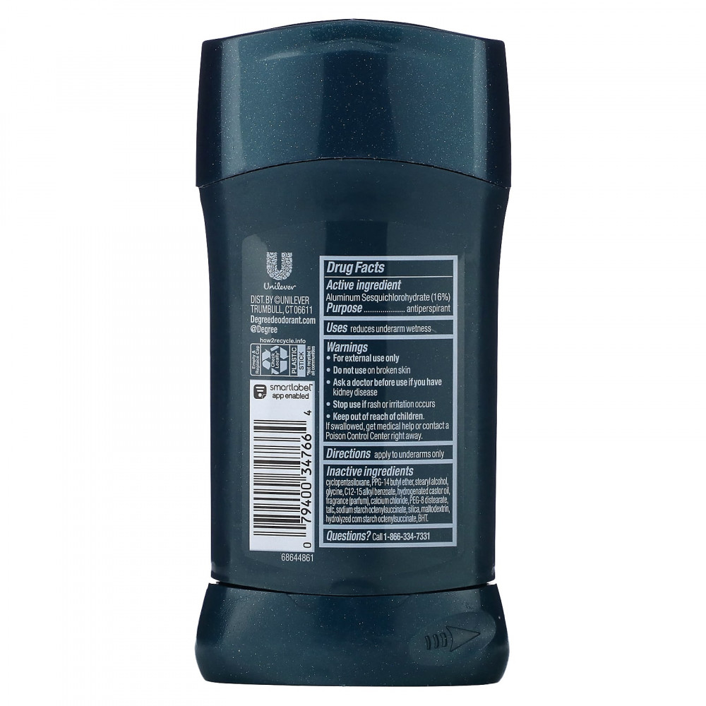 Дезодорант-антиперспирант Degree Men Cool Rush обеспечивает постоянную защиту, чтобы вас не остановить. Этот дезодорант-антиперспирант обеспечивает защиту в течение 72 часов, поэтому вы можете продолжать движение. Наш дезодорант-антиперспирант Cool Rush изготовлен на основе революционной технологии MotionSense®, которая работает независимо от того, как часто вы двигаетесь. Он работает с помощью уникальных микрокапсул, которые оседают на поверхности вашей кожи. Этот эффективный дезодорант-антиперспирант срабатывает, когда вы в нем больше всего нуждаетесь, так что вы можете быть уверены в своем выборе, не беспокоясь о том, что он может замедлить действие. Независимо от того, проводите ли вы долгий день на работе, занимаетесь спортом, тренируетесь в тренажерном зале или выполняете какие-либо другие функции, этот дезодорант-антиперспирант для мужчин защитит вас от пота и неприятного запаха. Этот дезодорант-антиперспирант работает так же, как и вы, защищая вас, чтобы вы могли оставаться активными и двигаться. Просто скользите и двигайтесь. Свежий арктический аромат заряжает энергией на весь день, чтобы вы могли с уверенностью достичь своих целей. Сохраняйте сухость, свежесть и уверенность в себе благодаря этому дезодоранту-антиперспиранту Degree Men. Этот продукт протестирован дерматологами и не содержит спирта.