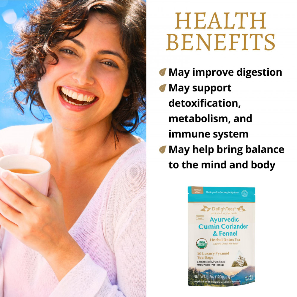 Согласно утверждениям аюрведы, здоровое пищеварение — это залог хорошего самочувствия и хорошего самочувствия. Я основала DelighTeas®, чтобы дарить радость и позитивный настрой с помощью питательных и настоящие аюрведические продукты».