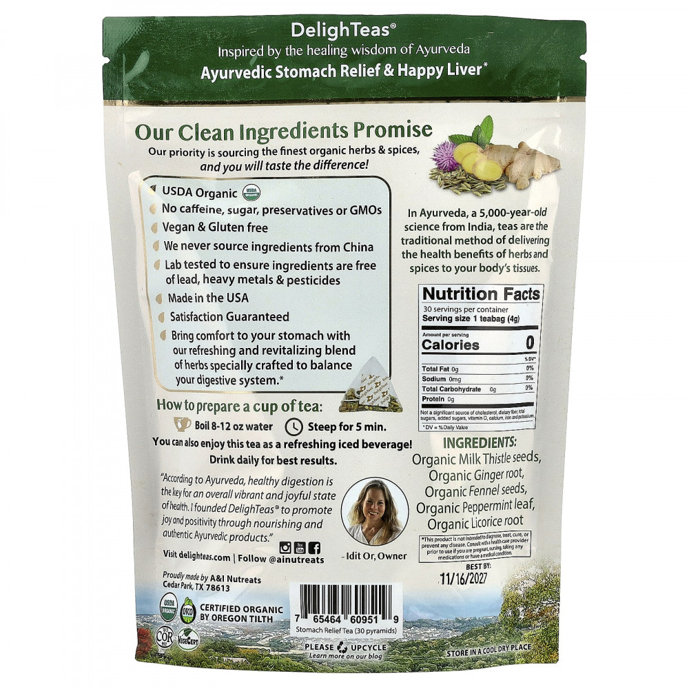 Согласно утверждениям аюрведы, здоровое пищеварение — это залог хорошего самочувствия и хорошего самочувствия. Я основала DelighTeas®, чтобы дарить радость и позитивный настрой с помощью питательных и настоящие аюрведические продукты».