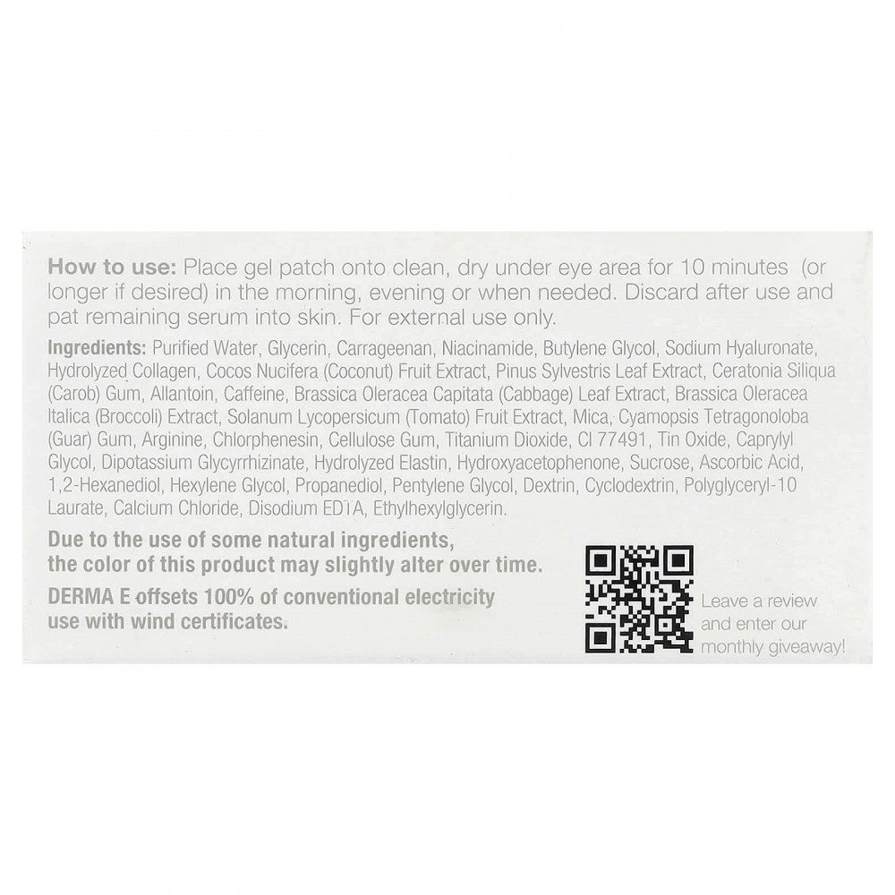 Благодаря охлаждающим гидрогелевым патчам отекшие глаза мгновенно становятся отдохнувшими и сияющими. Продукт, обогащенный витаминами C и B3, заметно осветляет темные круги под глазами, кофеин снимает отечность, а аллантоин и алоэ успокаивают, придавая вашим глазам свежесть и сияние.