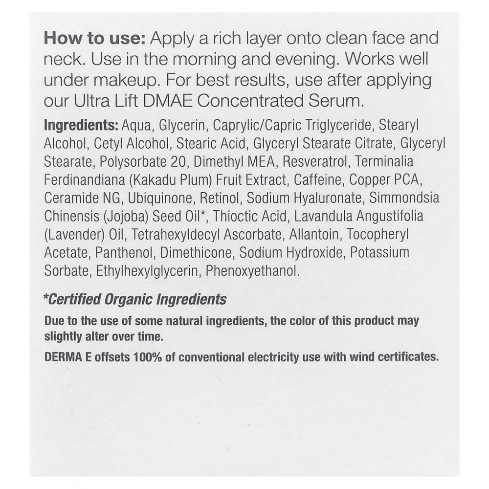 Обильно наносите на чистую кожу лица и шеи. Используйте утром и вечером. Хорошо подходит в качестве основы под макияж. Для достижения наилучших результатов используйте после применения нашей концентрированной сыворотки с ДМАЭ UltraLift.