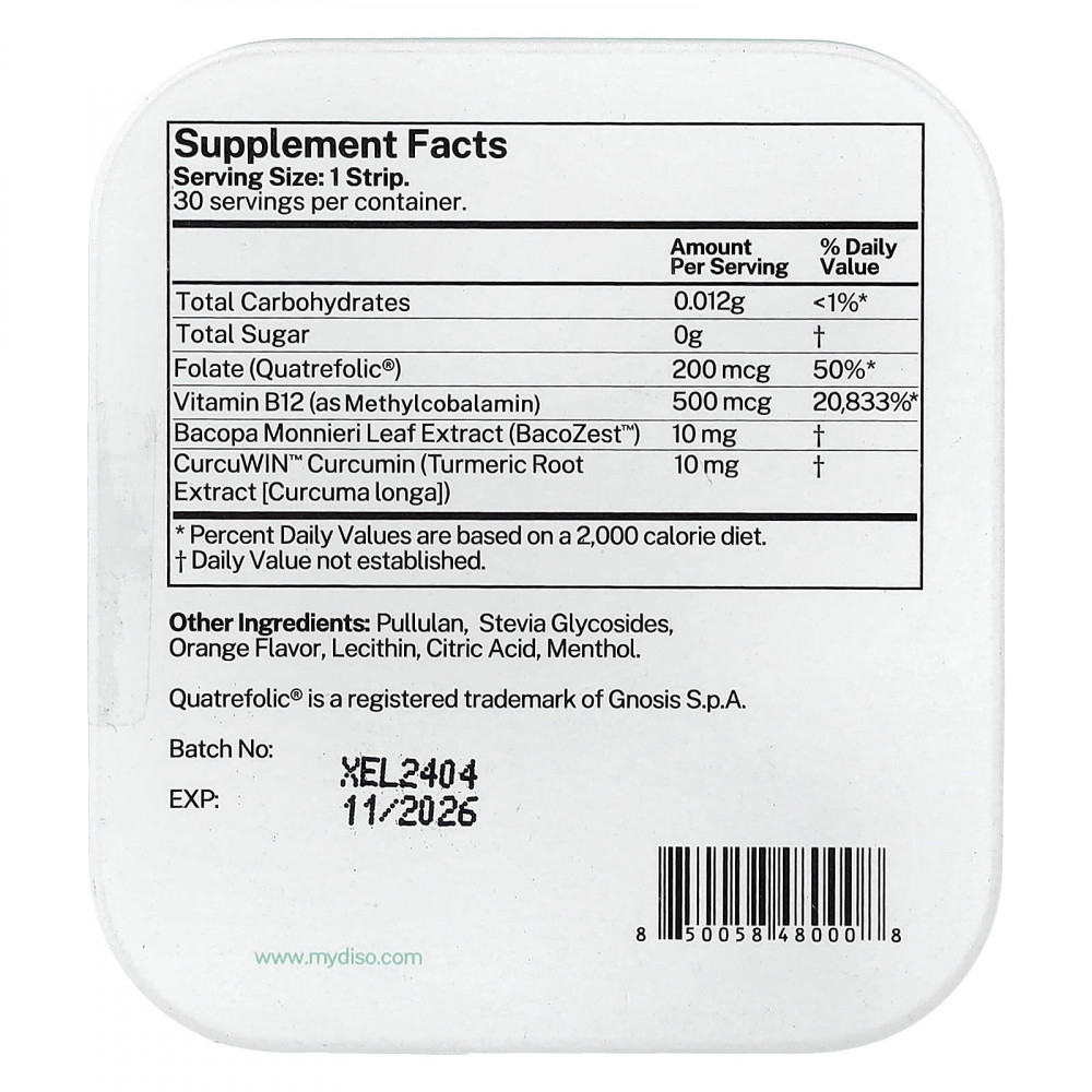 Эта добавка с витамином B12, обогащенная витамином B12 и витамином B9 (фолиевой кислотой), содержит важные питательные вещества, необходимые для улучшения настроения и поддержания уровня энергии. Когда у вас мало витамина B12, страдают эритроциты. Наши растворяющиеся полоски с витамином B12 стимулируют образование эритроцитов и предотвращают некоторые виды анемии, сохраняя высокий уровень энергии и поддерживая активность. А чтобы добавить в ваш утренний рацион немного вкусной пользы, добавка с витамином B12 от Diso имеет апельсиново-мятный вкус!