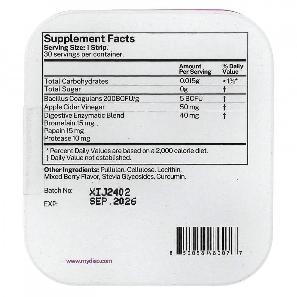 Принимать по 1 полоске в день, желательно во время еды. Поместите полоску Diso® на язык и дайте ей раствориться.